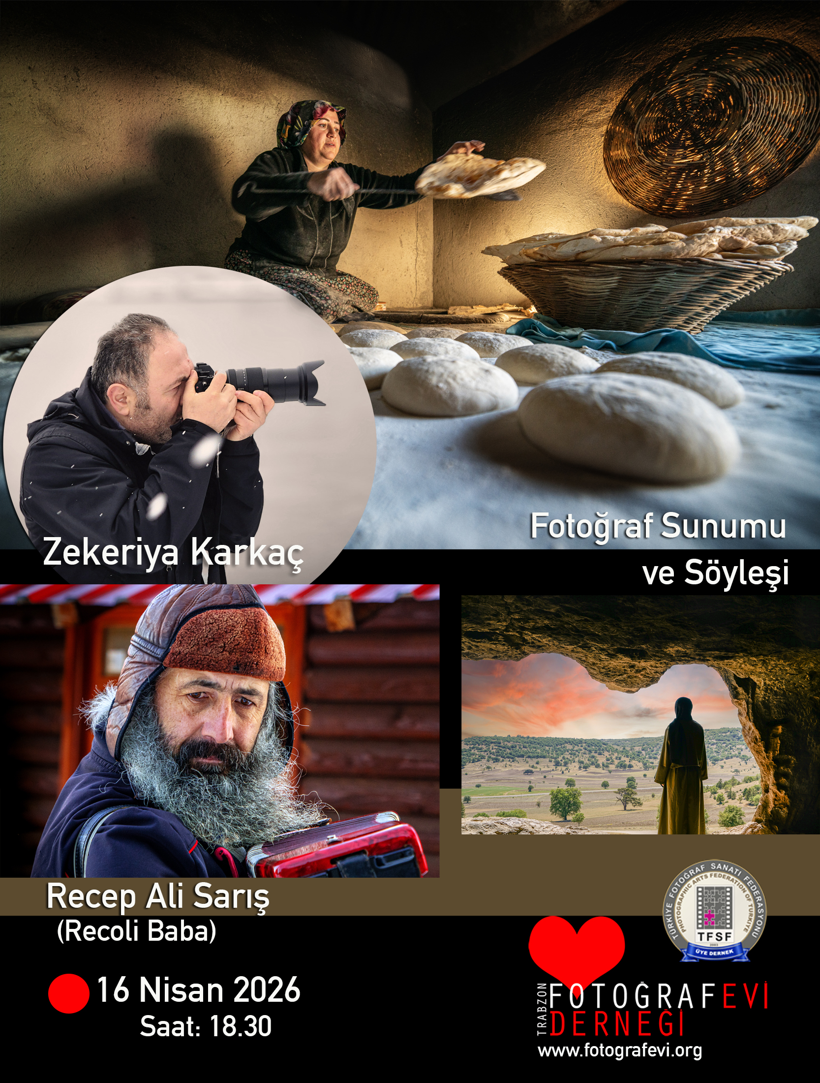 15 OCAK 2026 Perşembe 18.30′ da Trabzon Fotoğrafevi Derneğimizde fotoğraf sunumu ve söyleşisi ile Şeker ZAMAN bizlerle birlikte olacaktır. Fotoğraf etkinliğimize davetlisiniz.