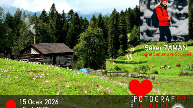15 OCAK 2026 Perşembe 18.30′ da Trabzon Fotoğrafevi Derneğimizde fotoğraf sunumu ve söyleşisi ile Şeker ZAMAN bizlerle birlikte olacaktır. Fotoğraf etkinliğimize davetlisiniz.